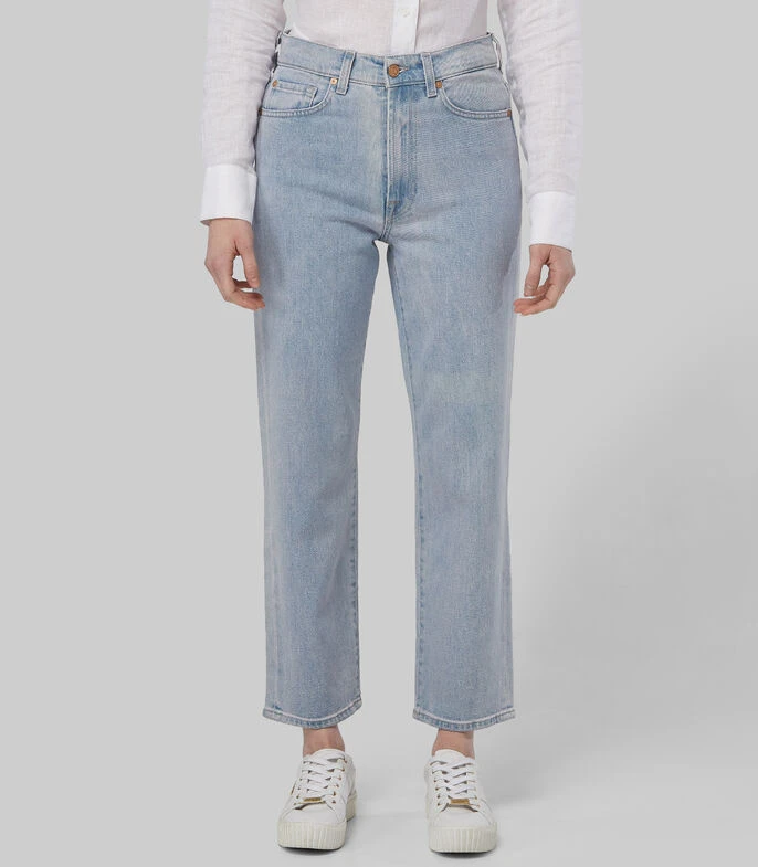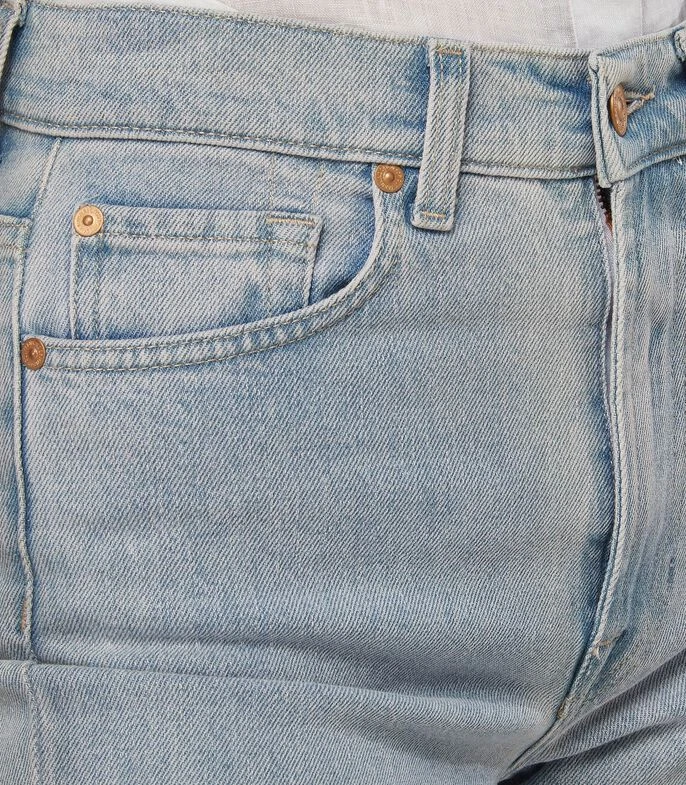 Jeans 7 For All Mankind Logan Stovepipe de corte Recto con diseño jaspeado, pespuntes a contraste, remaches y borde inferior deshilachado.