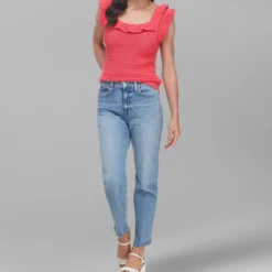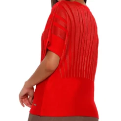Blusa Adolfo Dominguez tipo crop de corte ajustado en tejido de punto liso, textura acanalada, cuello asimétrico y sin mangas. ¡No pierdas la oportunidad de lucir radiante con esta blusa vanguardista!