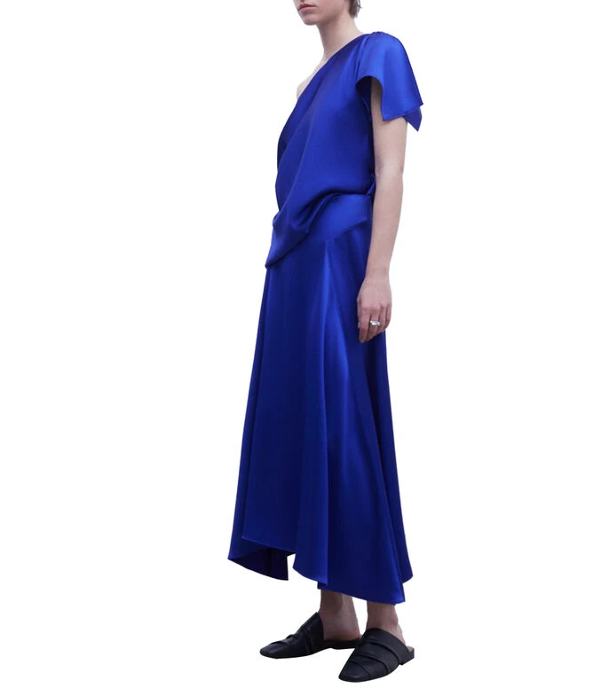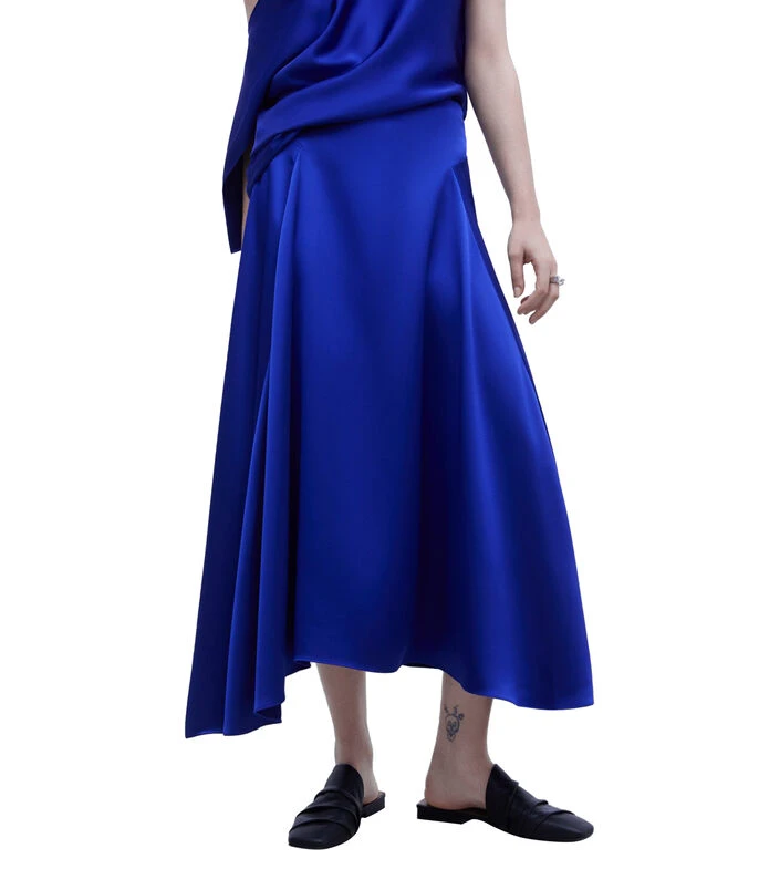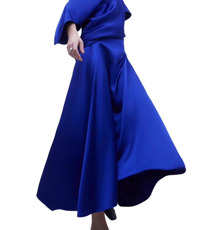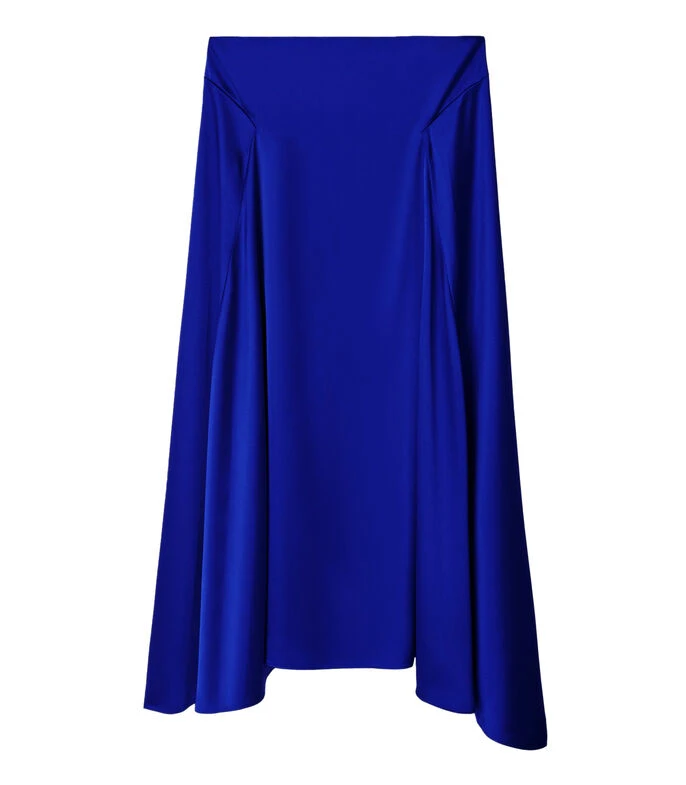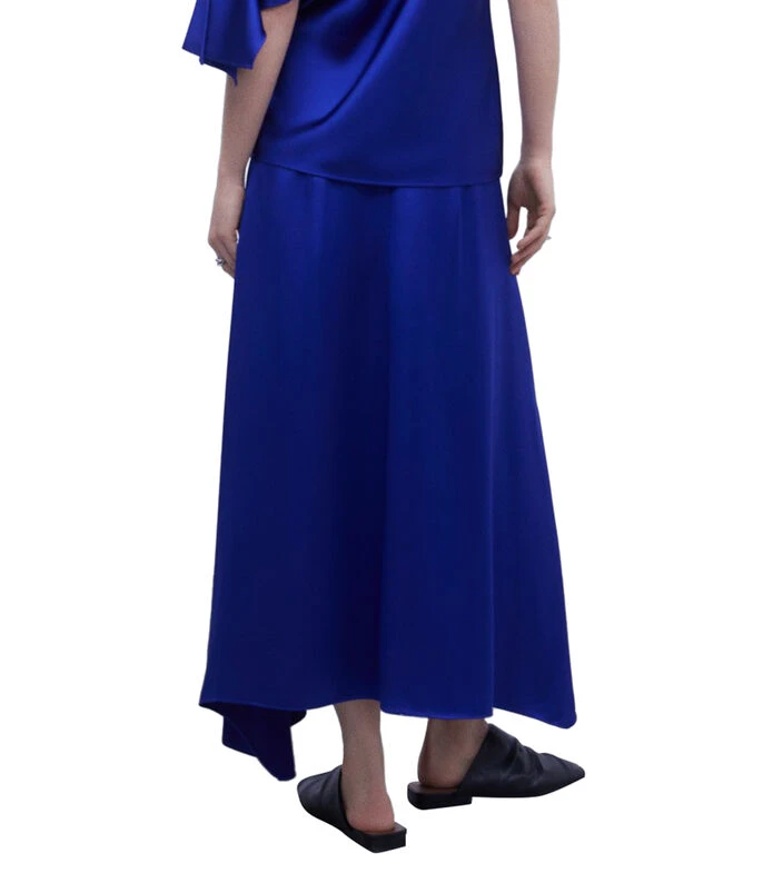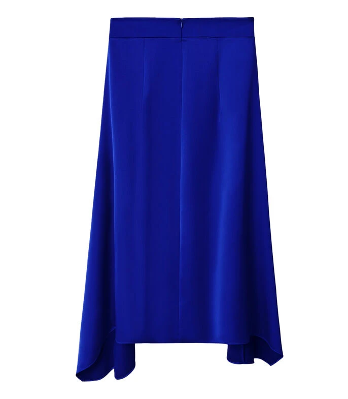 Falda larga Adolfo Dominguez de corte recto en tejido sólido, detalle de olanes colgantes al frente y cremallera en parte trasera.