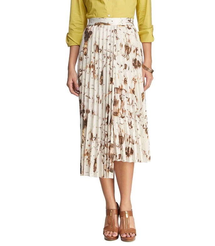 Falda Midi Adolfo Dominguez de corte A en tejido de punto plisado, pretina elástica, diseño a contraste y fondo a tono.