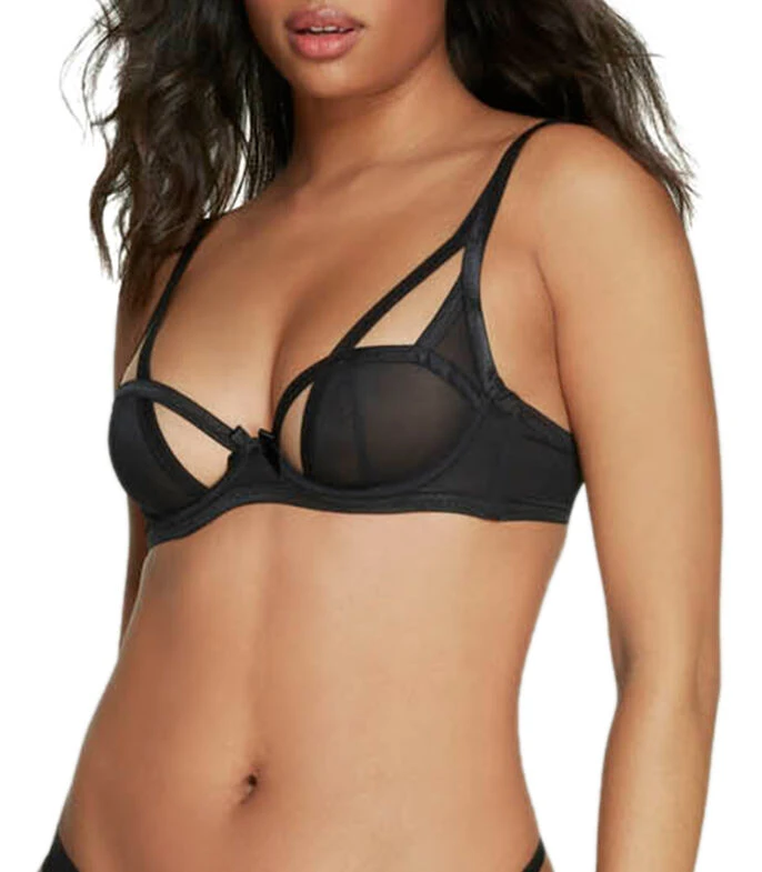 Brasier Agent Provocateur Joan; diseño en color negro, tirantes elásticos con efecto mojado y forro de red invisible para dar el aspecto de un sujetador con aberturas.