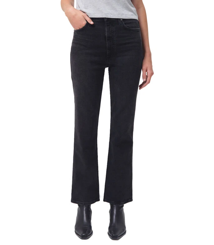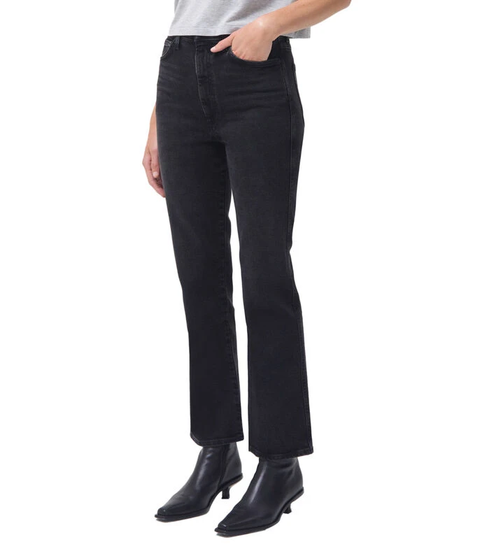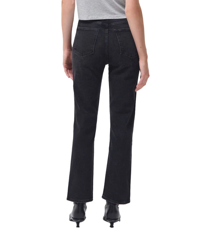 Jeans Agolde de corte recto, pespuntes a tono, remaches metálicos y sutil diseño deslavado.