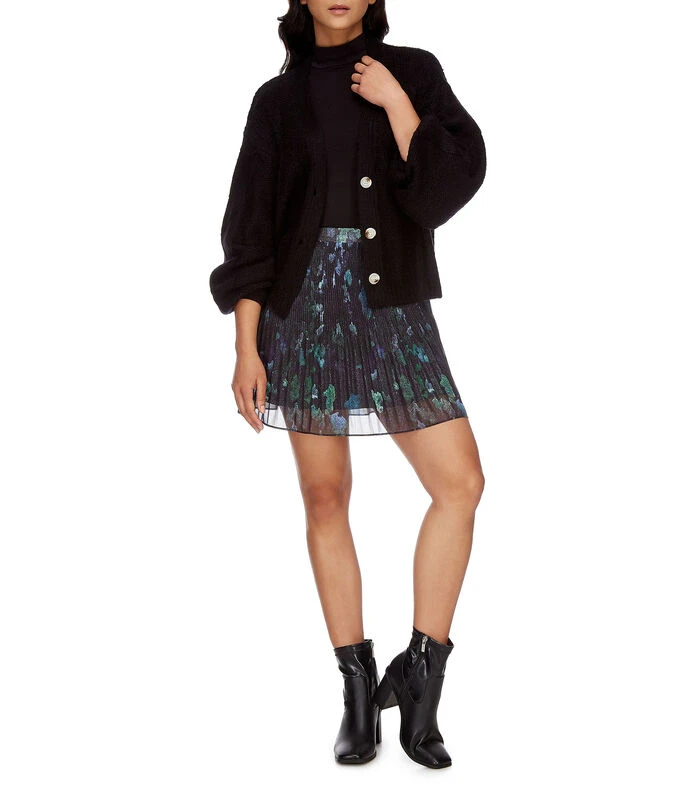 Falda AllSaints corta de corte regular en tejido de punto con diseño a contraste, acabado acanalado y pretina elástica.