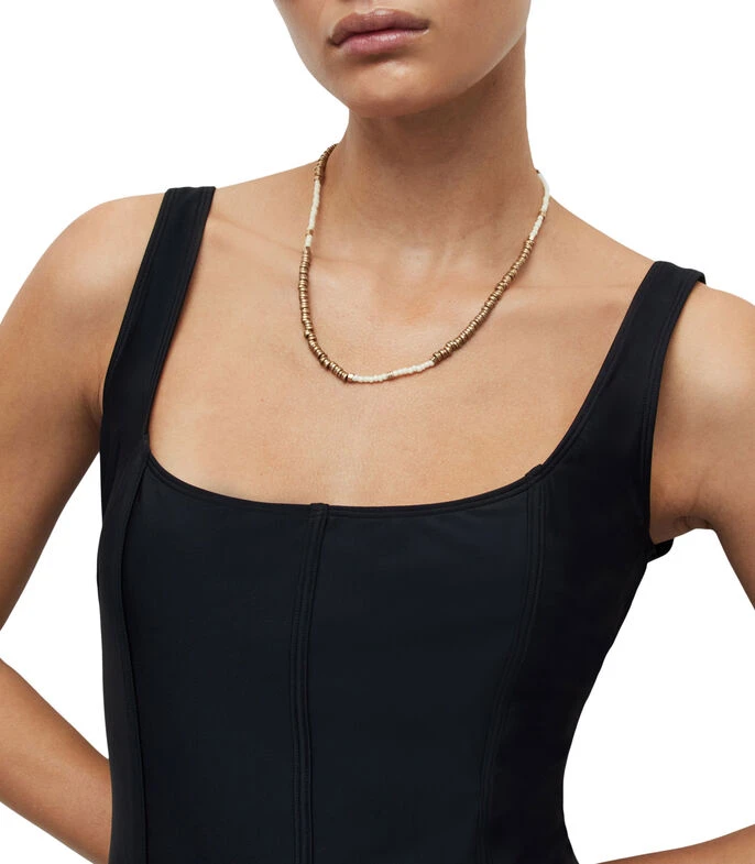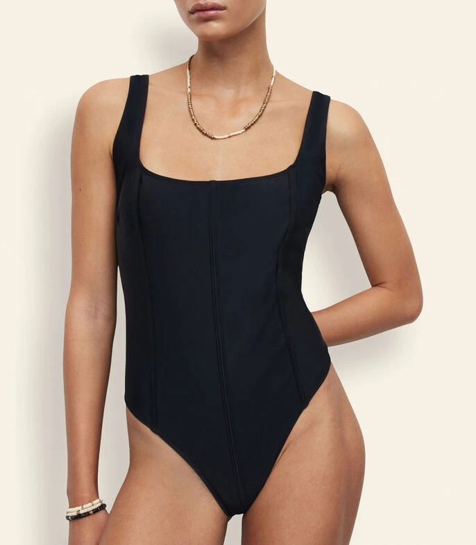 Trikini AllSaints en tejido plano con diseño liso, escote cuadrado, tirantes medianos con costuras a tono.