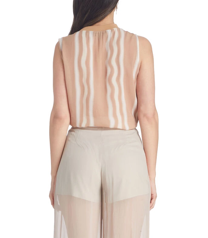 Blusa Armani Exchange de corte regular en tejido de punto, cuello redondo, sin mangas, ondas al frente a contraste.
