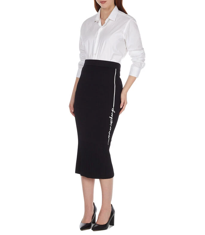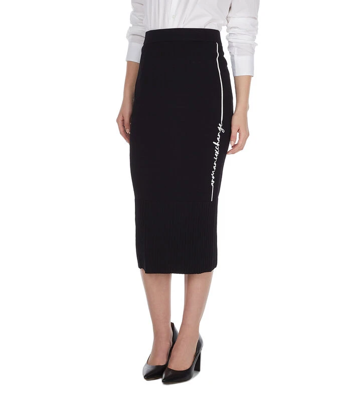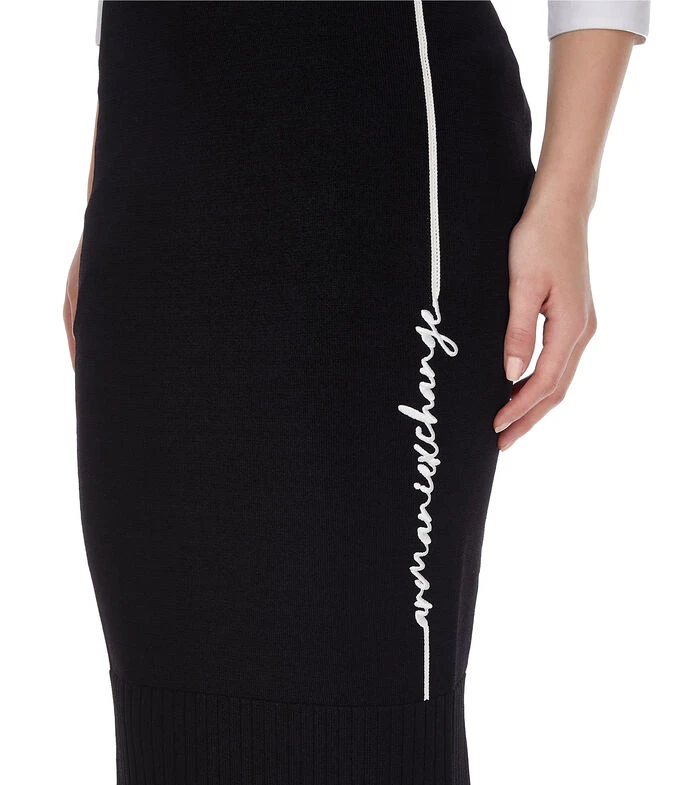 Falda Armani Exchange larga de corte recto en tejido de punto, pretina elástica, detalle de línea con nombre de la marca bordado a contraste y detalle acanalado en borde inferior.