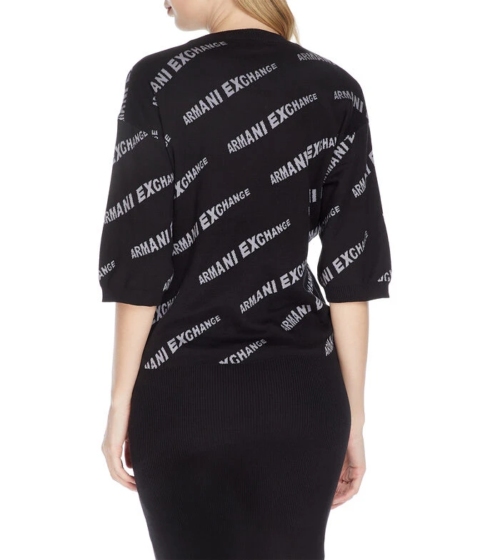Vestido Armani Exchange corto de corte ajustado en tejido de punto con diseño monogram, manga 7/8 y escote redondo.