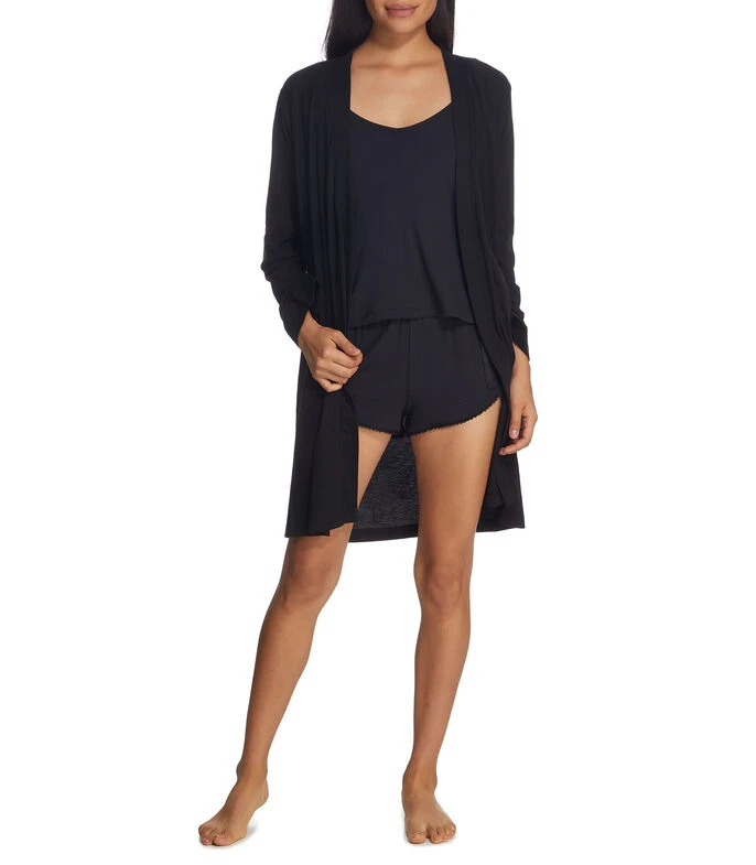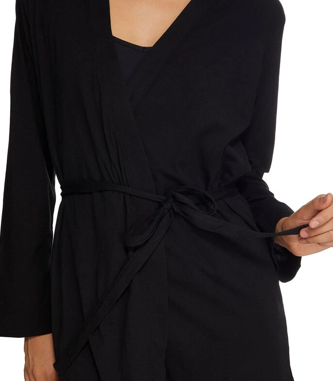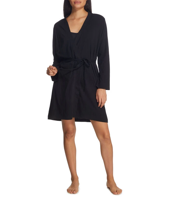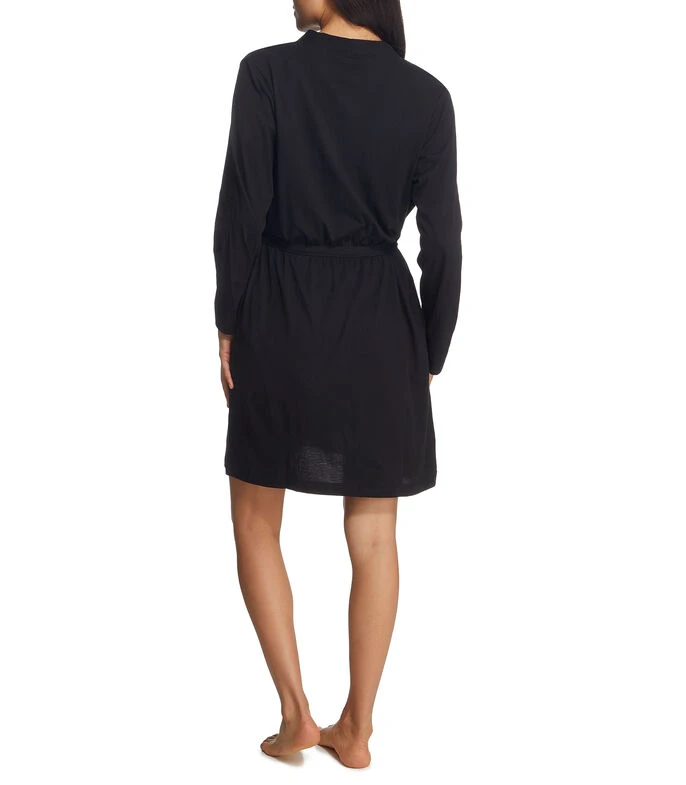 Bata para dormir UNWIND by Epsilon, en tejido de punto, cuello V, manga larga, elástico en cintura y bolsillos en costados.