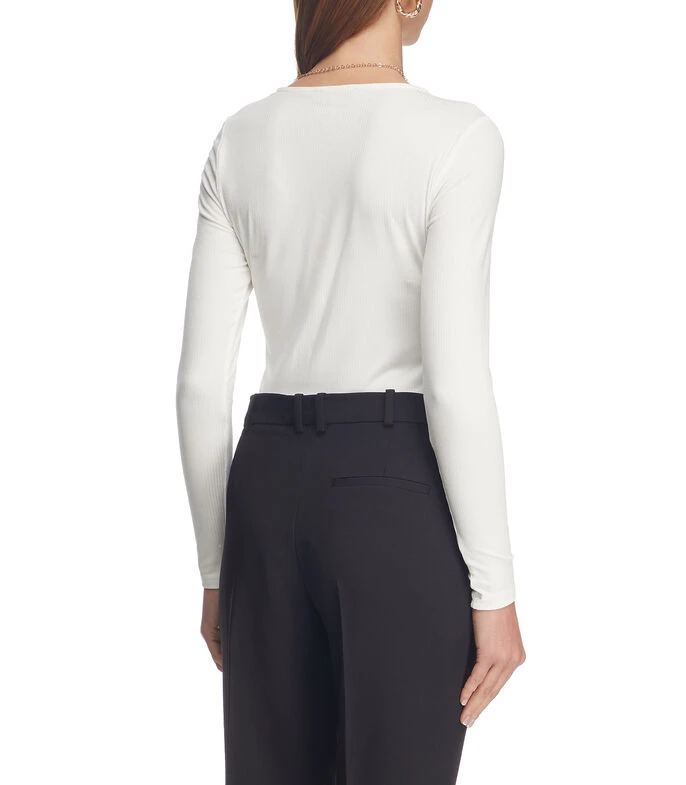 Blusa BCBGeneration de corte recto en tejido de punto con acabado acanalado, cuello asimétrico con detalle decorativo con aberturas y manga larga.