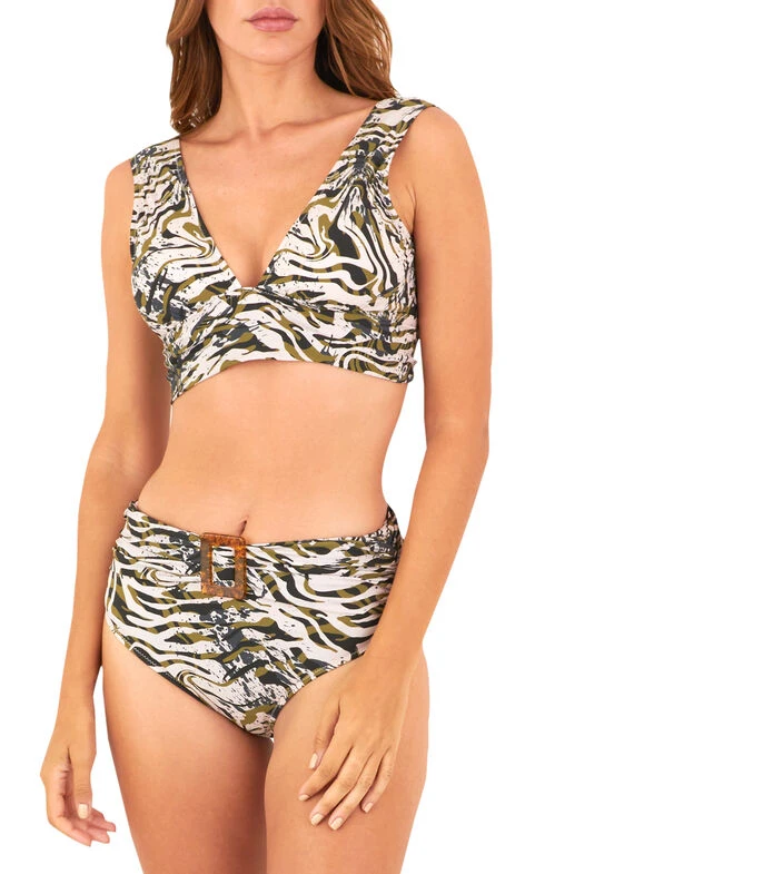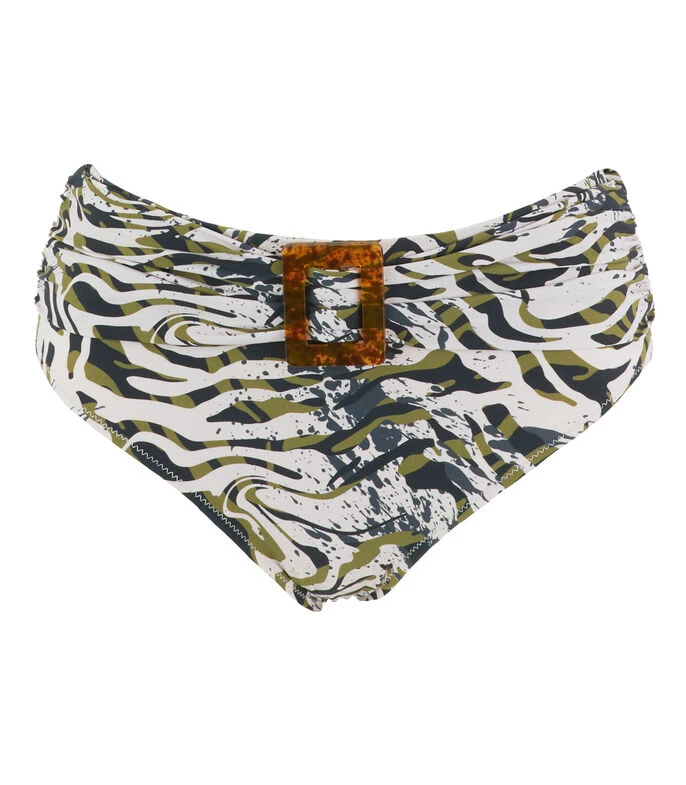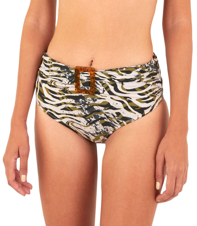 Bikini bottom Zingara en tejido plano animal skin con banda en cintura y hebilla sintética.