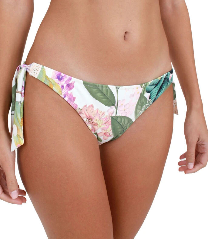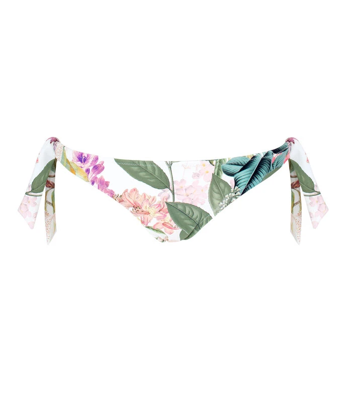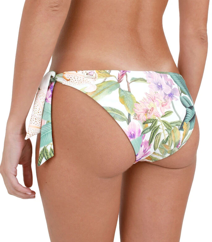 Bikini bottom Zingara en tejido de punto con estampado floral multicolor y nudos de amarre en costados.