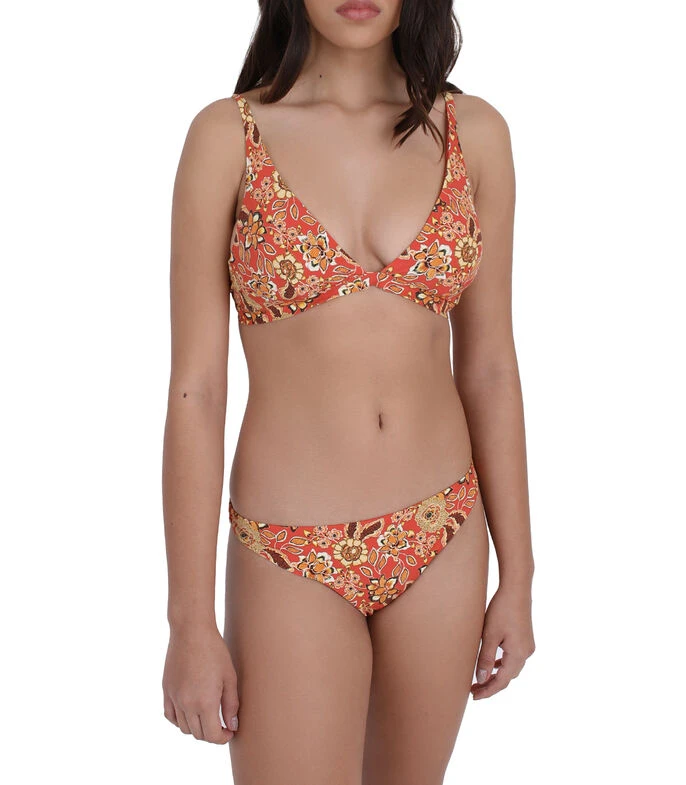 Bikini Bottom Zingara Ixora en tejido plano, estampado de flores multicolor y bordes elásticos.