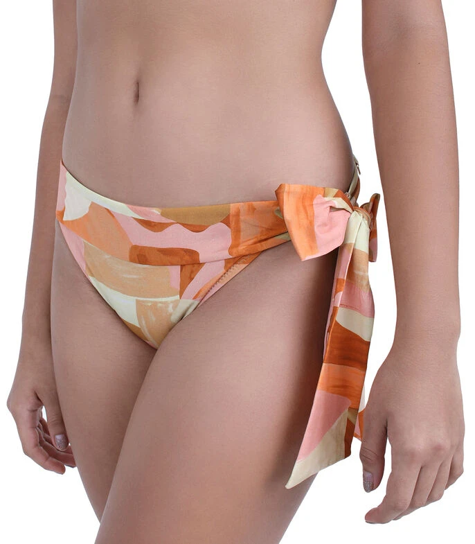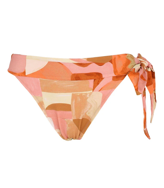 Bikini Bottom Zingara en tejido plano, estampado geométrico multicolor, cinta para ajustar en costados y bordes elásticos.