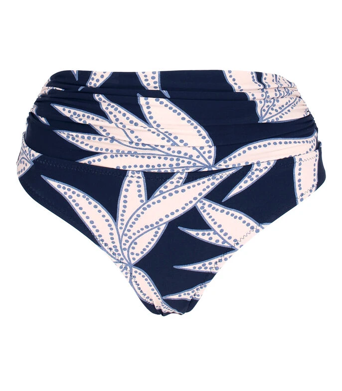 Bikini bottom Zingara Kentia; en tejido plano con print a contraste y borde superior tipo faja.