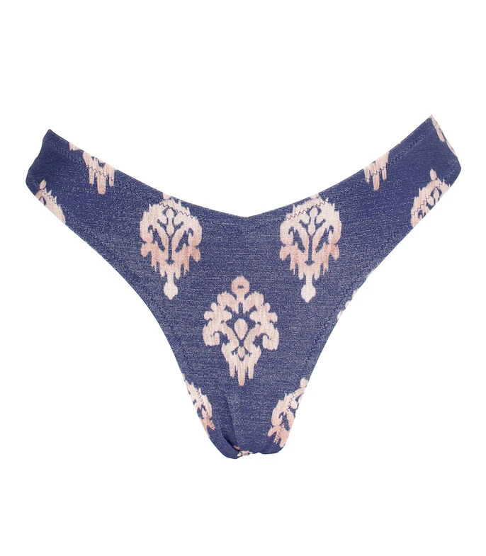 Bikini bottom Zingara Kilauea; en tejido plano con estampado a contraste y diseño en V al frente.