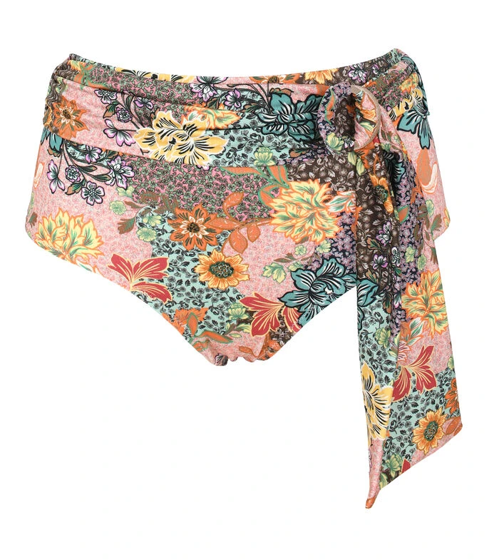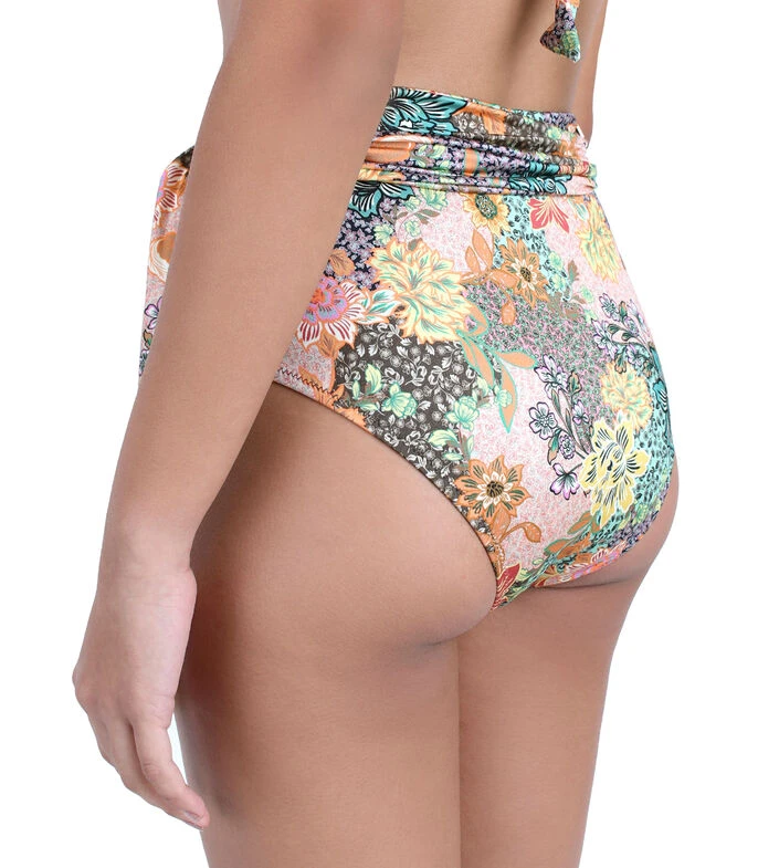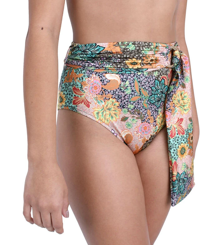 Bikini bottom Zingara Passiflora en tejido de punto con diseño de flores, cintura alta y listón decorativo.