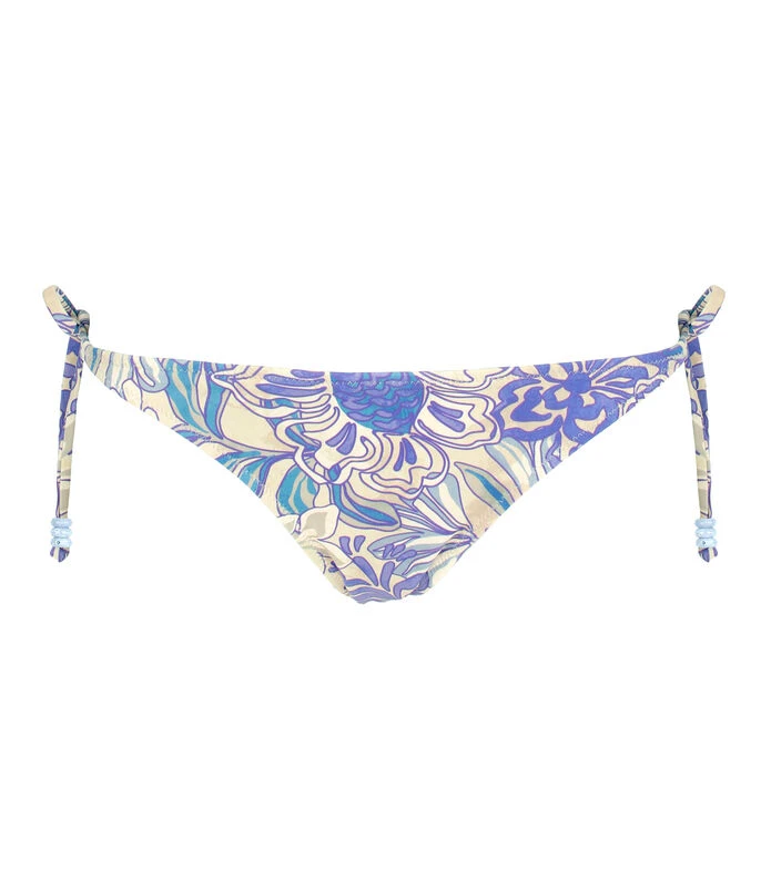 Bikini bottom Zingara Persea; en tejido plano con gráfico a contraste y tiras de amarre en costados.