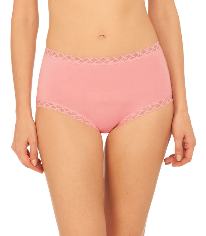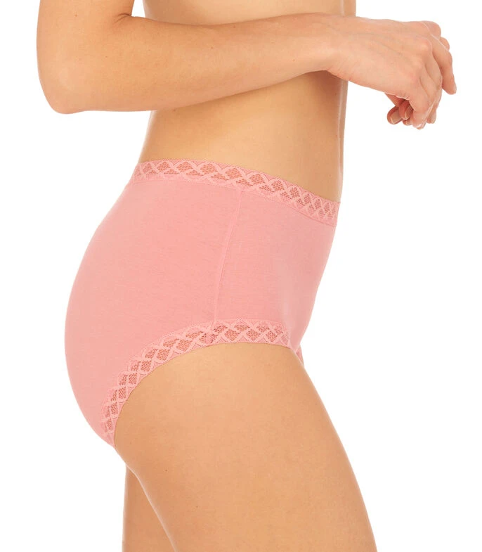 Bikini Natori Brief en tejido de punto, pretina elástica y bordes con detalles bordados. Una cobertura completa que no muestra nada.