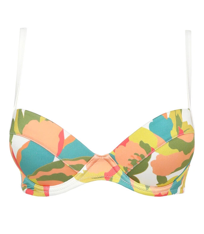 Bikini Top Zingara Seagrass en tejido plano con estampado multicolor, tirantes ajustables y broche en espalda.
