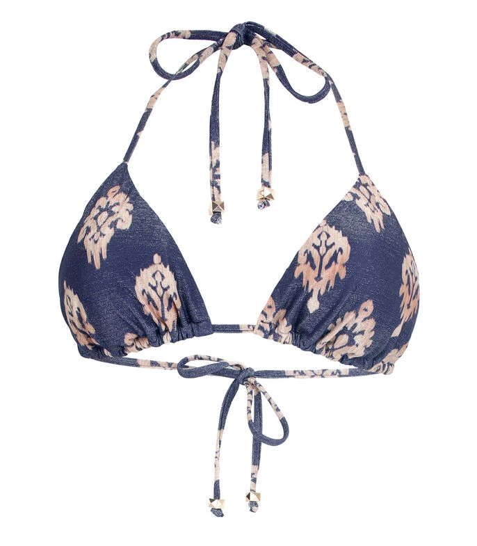 Bikini top Zingara Kilauea en tejido de punto con estampado fantasía, estilo triángulo, copas suaves removibles, tirantes delgados y lazo en espalda.