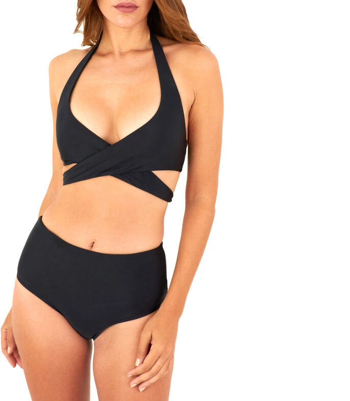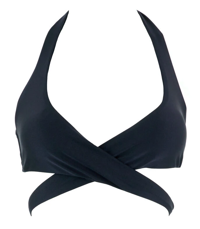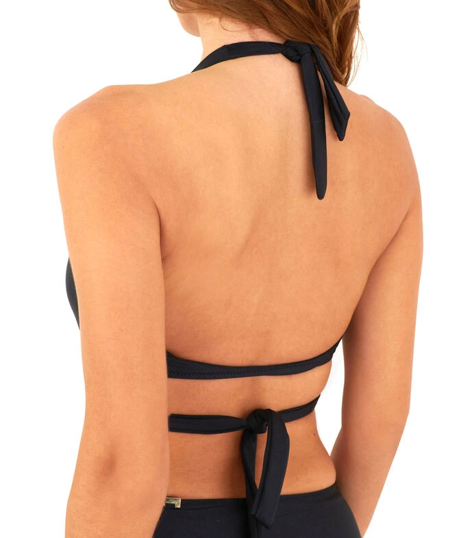 Bikini Top Zingara Marylin de la colección Timeless; en tejido plano con detalle cruzado y nudos en espalda.