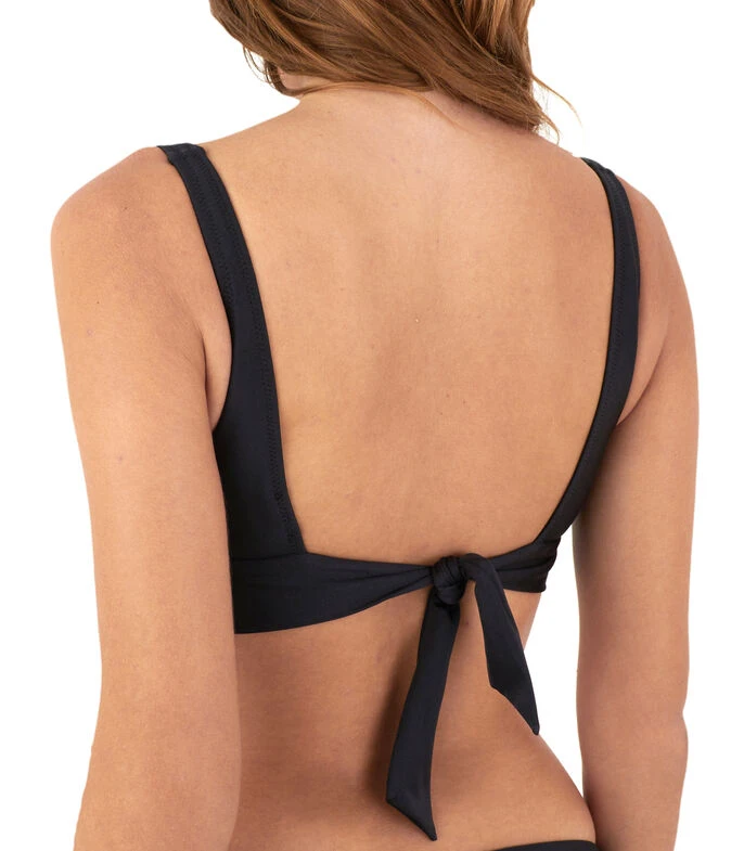 Bikini Top Zingara Marylin de la colección Timeless; en tejido plano con tirantes anchos y nudo de amarre en espalda.