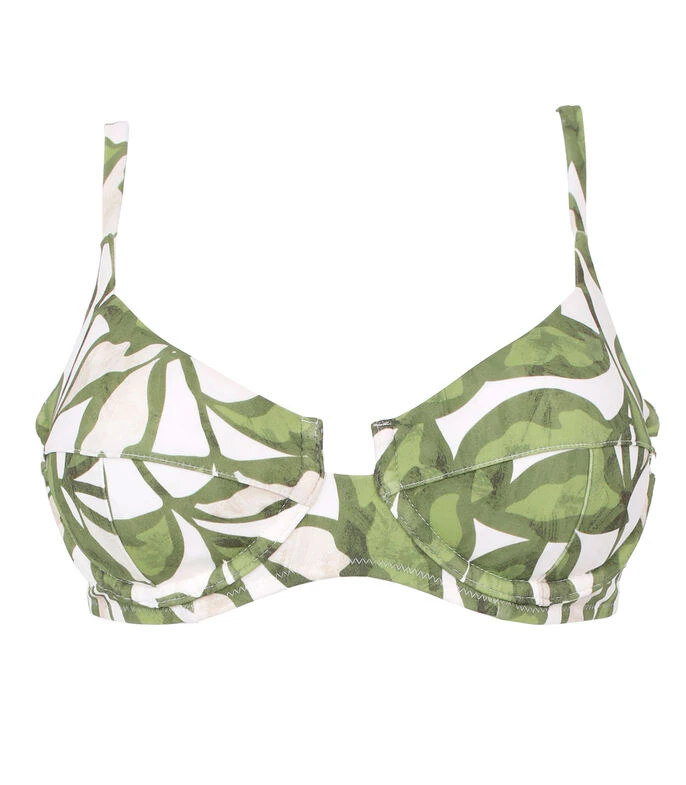 Bikini Top Zingara Solandra en tejido de punto, estampado a contraste, tiras delgadas ajustables y cintas tipo cierre. ¡Sol, arena y mar a la vista! Una prenda para estar cómoda en la paya.