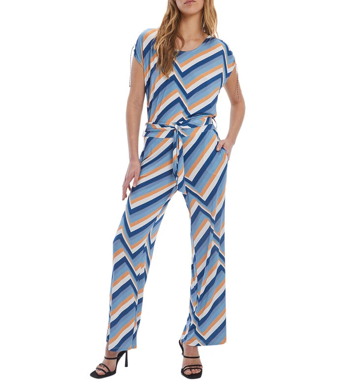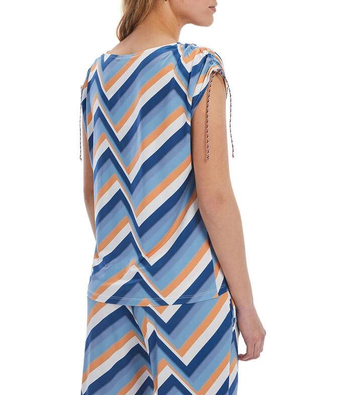 Blusa Paz Torras de corte regular en tejido de punto con diseño geométrico a contraste, cuello redondo y manga corta.
