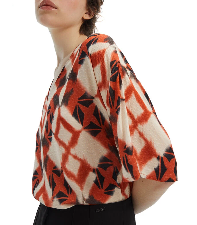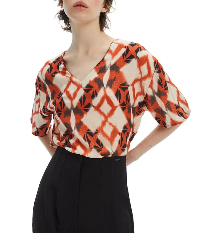 Blusa Andam de corte regular en tejido de punto y estampado tribal a contraste.