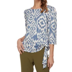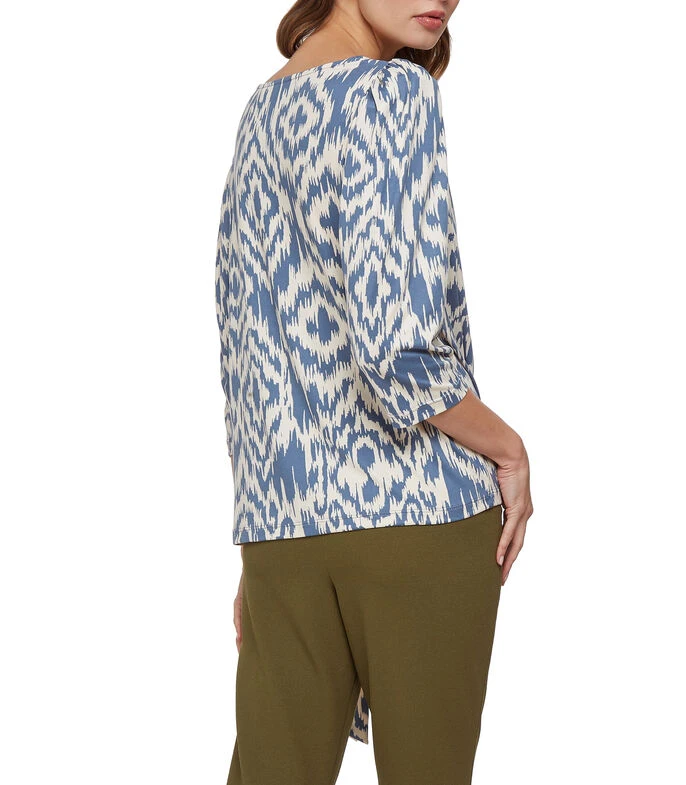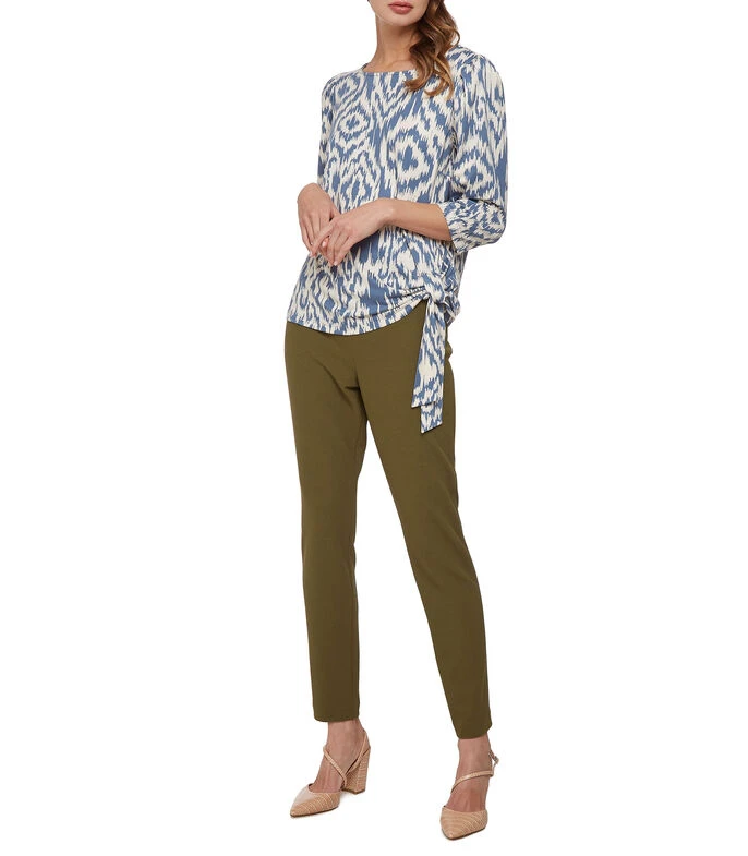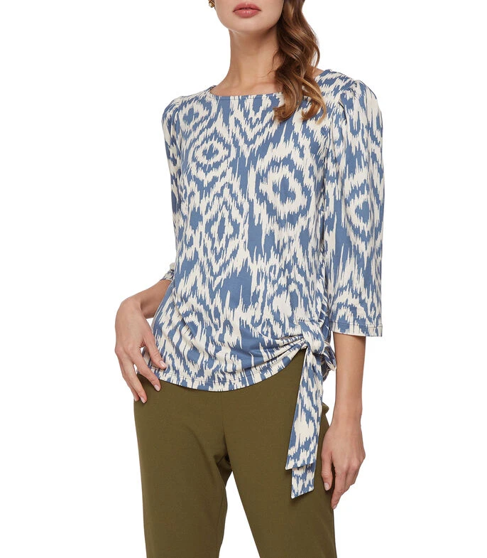 Blusa Pórtico de corte regular en tejido de punto con líneas a contraste, dobladillo decorativo en hombro y cintas en costado.