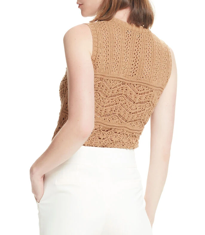 Blusa Julio de corte regular en tejido de punto con hermoso diseño calado, cuello redondo y bordes acanalados.