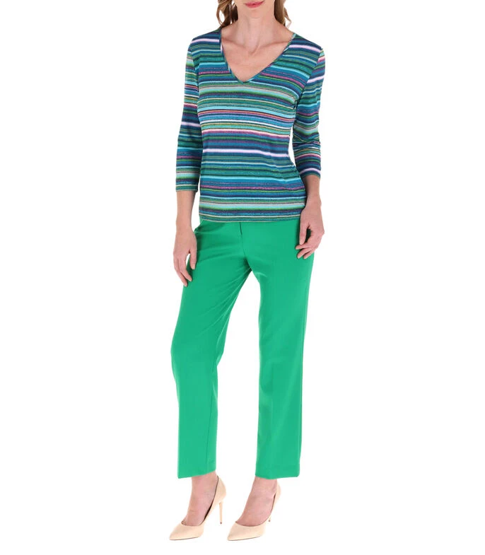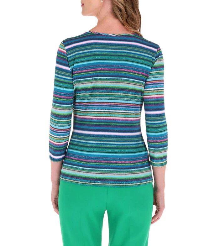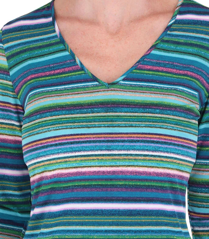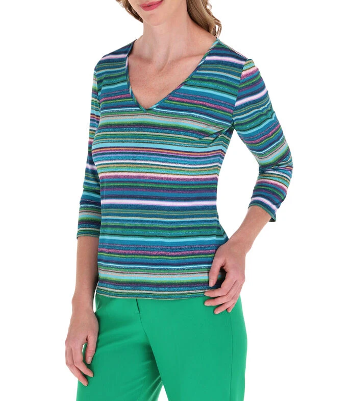 Blusa Charme de corte recto en tejido de punto con diseño de rayas horizontales, cuello V y manga 3/4.
