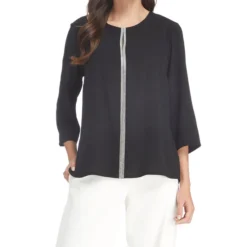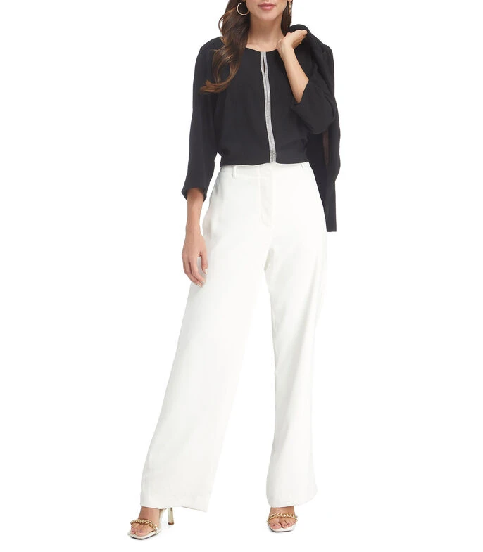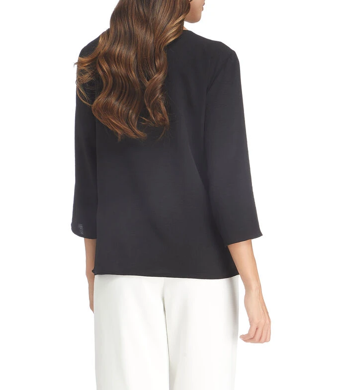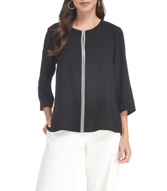 Blusa Charme de corte regular en tejido de punto con diseño liso, cuello redondo, manga 3/4 y adorno de pedrería a contraste.