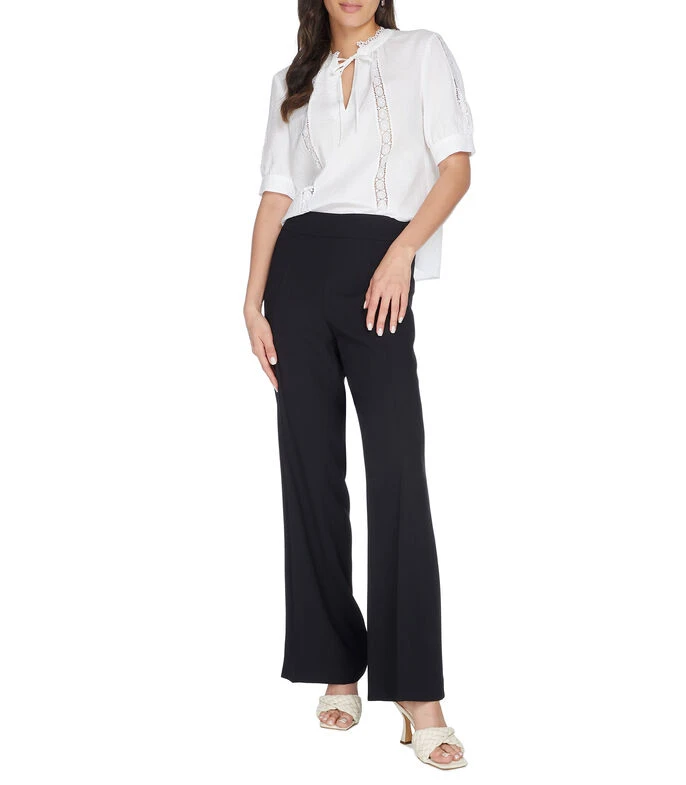 Blusa Roberto Verino de corte regular en tejido de punto con diseño liso, cuello V, listones decorativos en los costados y manga corta.