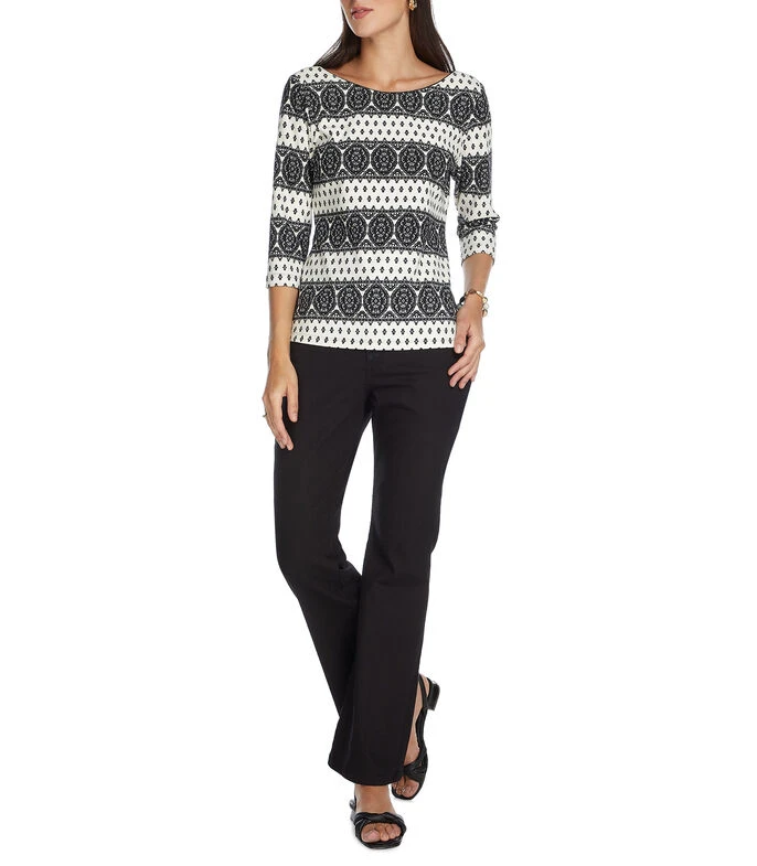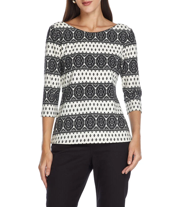 Blusa Pertegaz de corte regular en tejido de punto con diseño cachemira, manga 7/8 y cuello redondo.