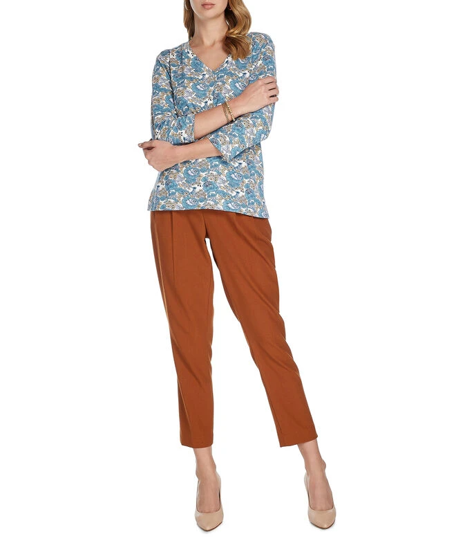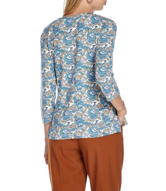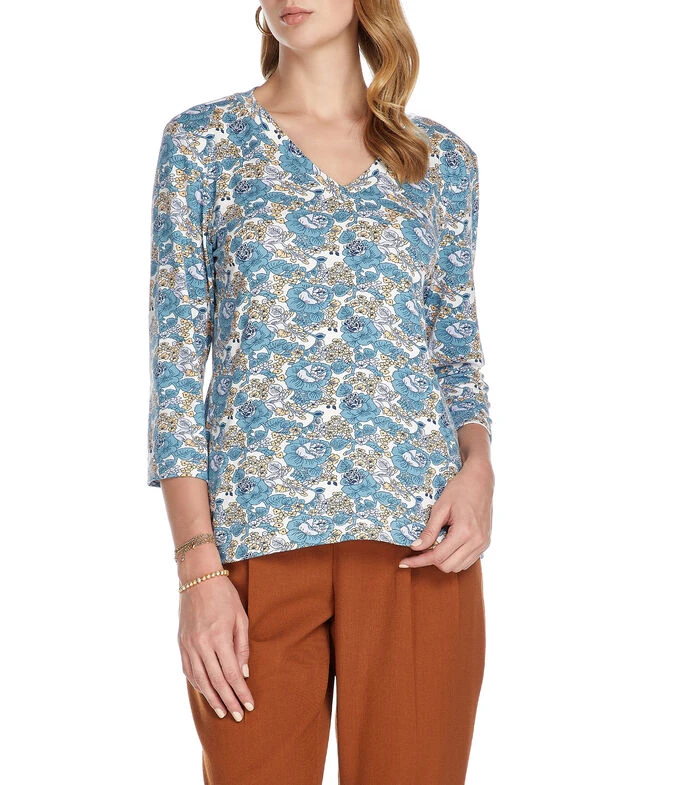 Blusa Pertegaz de corte regular en tejido de punto con diseño de flores en mosaico, manga larga y cuello V.