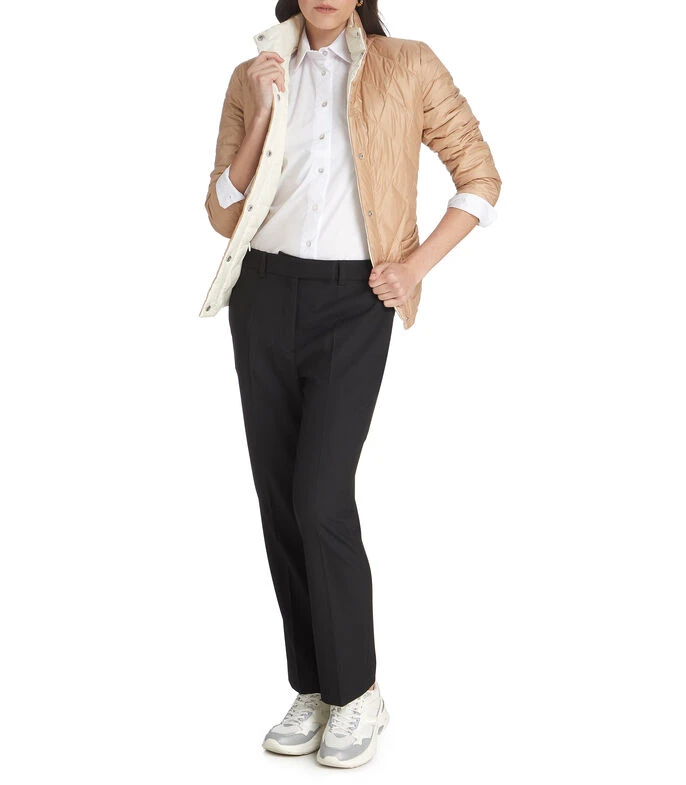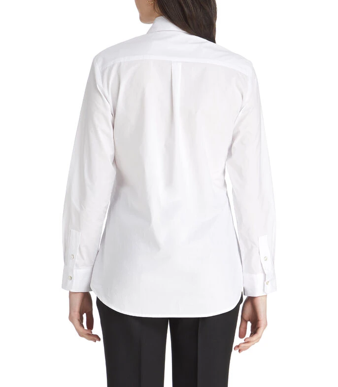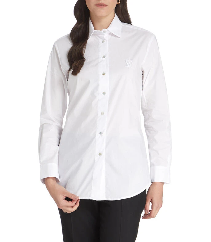 Blusa Roberto Verino de corte recto en tejido plano, cuello camisero, botonadura contraste al frente, manga larga con puño simple y detalle de iniciales de la marca bordadas en costado.