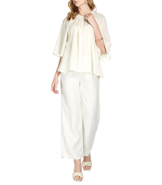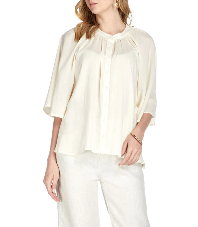 Blusa Chester & Peck de corte oversized en tejido de punto con botones a tono, manga ranglan y diseño plisado.