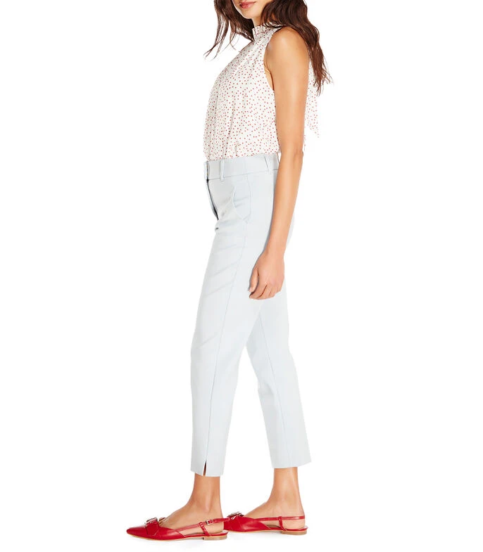 Blusa Julio de corte regular en tejido de punto con estampado polkadots, cuello halter, sutil abertura y lazo en espalda y sin mangas.