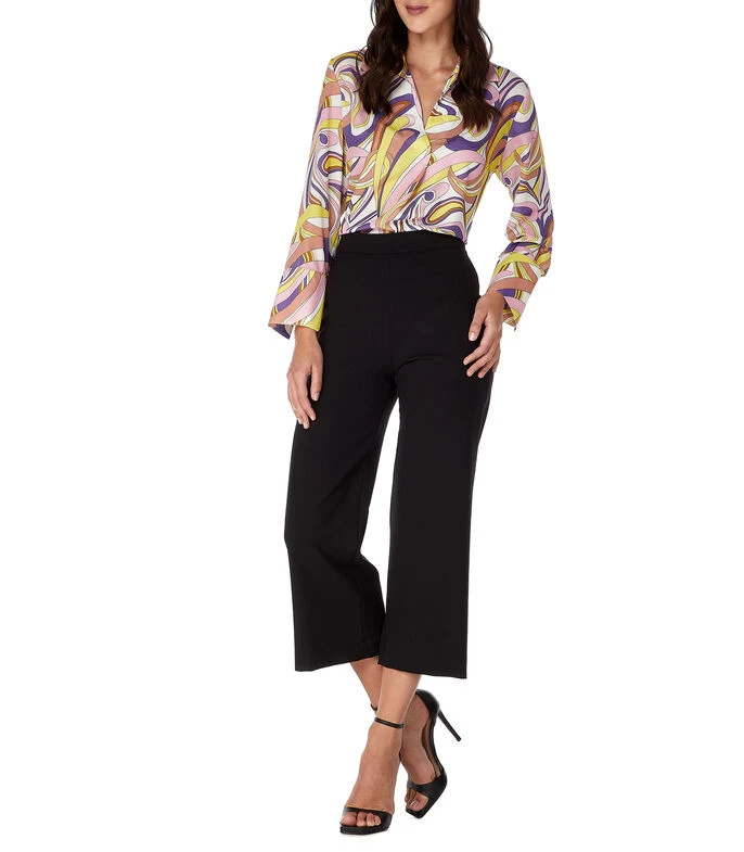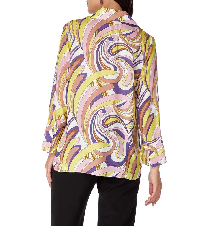 Blusa Charme de corte oversized en tejido de punto con estampado psicodélico, pinza el pecho y puño simple.