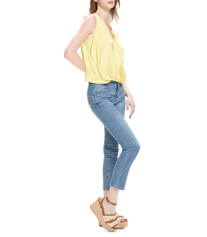 Blusa Julio de corte regular en tejido de punto con diseño liso, sin mangas y escote V.