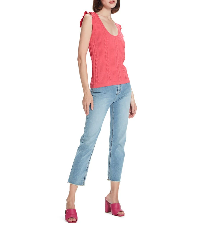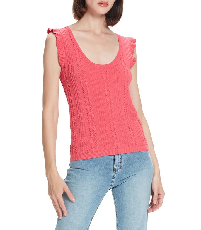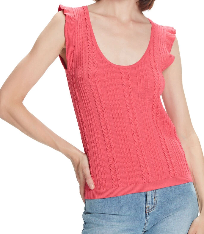 Blusa Julio de corte recto en tejido de punto con motivos en relieve, cuello V, con manga corta de escarola.