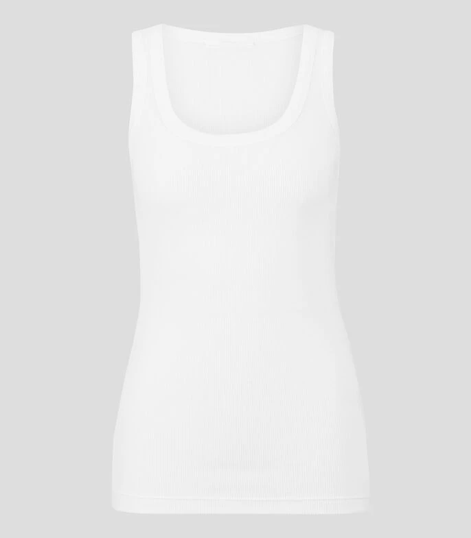 Una blusa sin mangas con escote redondeado y corte ajustado de Boss Mujer. Elaborado en punto elástico de algodón orgánico, este top sin mangas se presenta con estructura de canalé y un logo bordado en hilo tonal en la cintura. Es una prenda polivalente ideal para dar carácter a un conjunto casual.