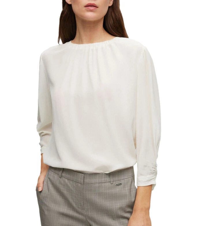 Una blusa regular fit Boss Mujer, elaborada con suave seda lavada y adornada por botones de metal en la parte trasera.
