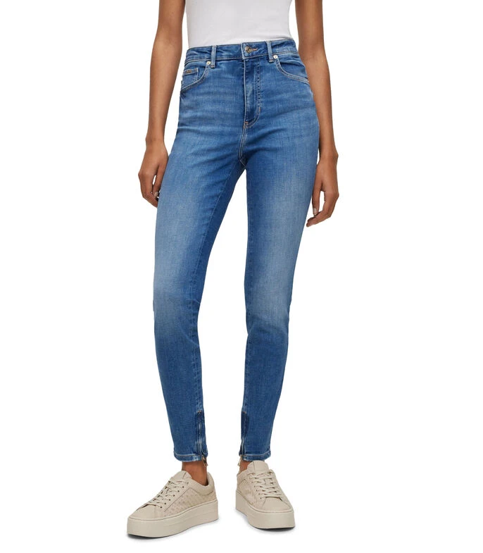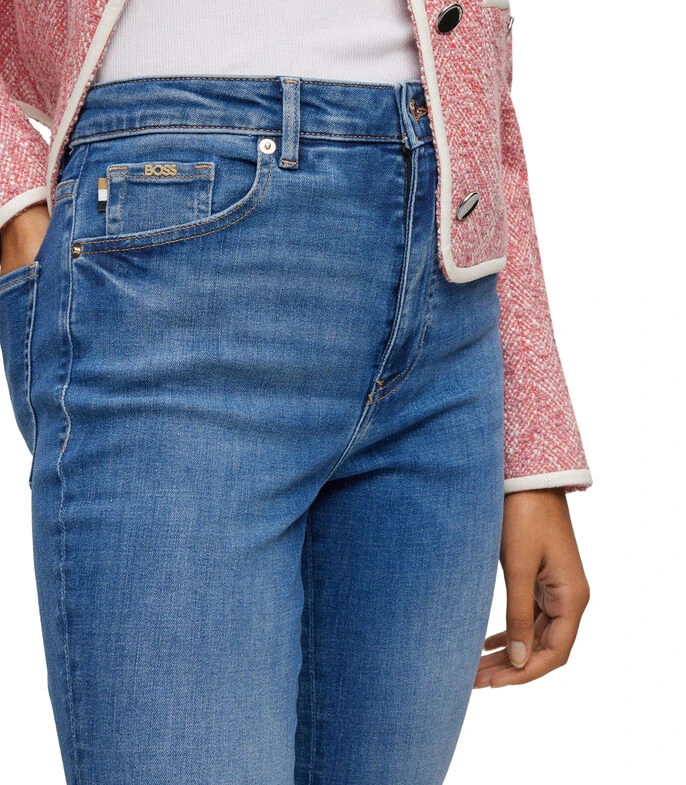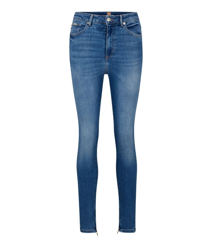 Unos jeans de talle alto Boss Mujer confeccionados en mezclilla superelástica con cremalleras en la parta inferior.