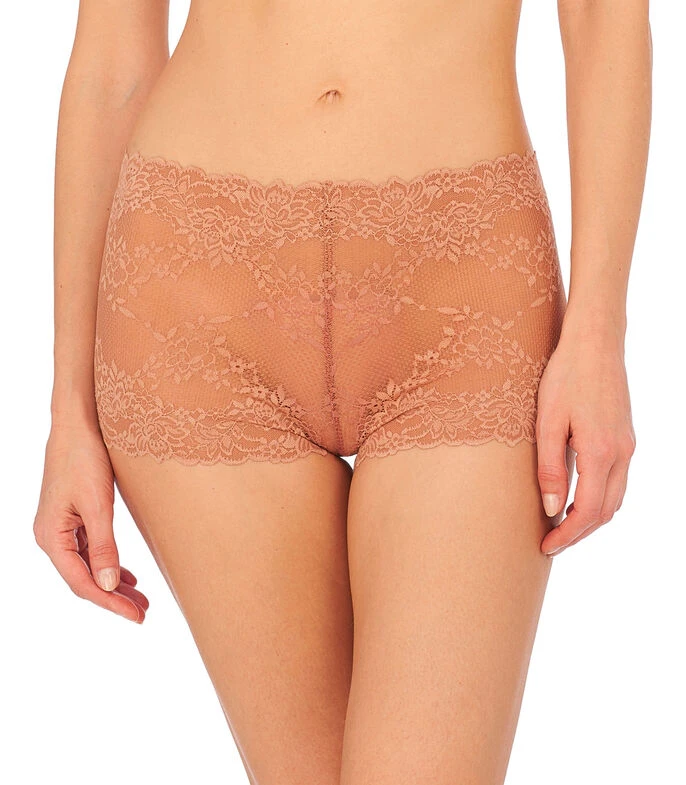 Bóxer Natori Heavenly en tejido de punto tipo encaje con detalles florales. Una prenda contemporánea para tu lencería de cada día. Un delicado bóxer femenino está elaborado con un hermoso detalle para una comodidad durante todo el día, con un toque de transparencia y sensualidad.