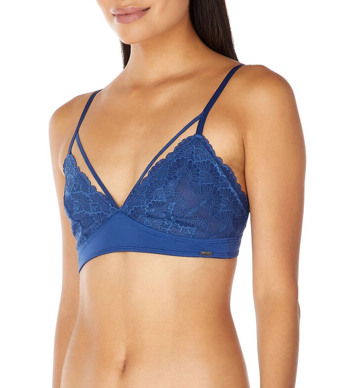 Bralette sin varillas Epsilon en tejido de punto tipo encaje, sin copas, tirantes delgados ajustables y cierre de ganchos en espalda.