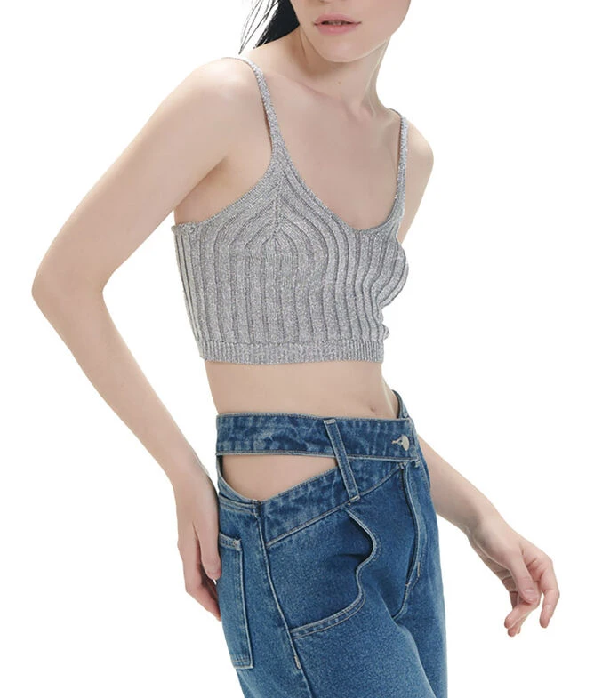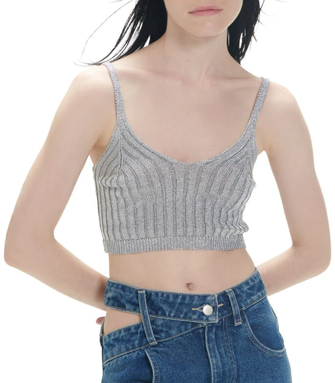 Bralette Unfollow de escote V con tirantes. Tejido de punto con hilo metalizado.