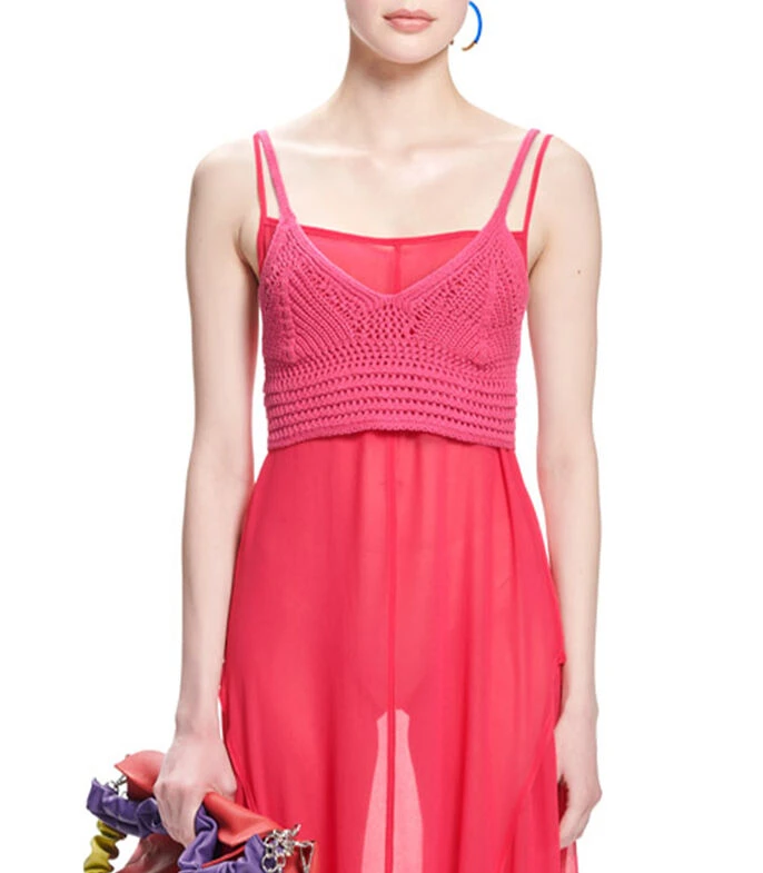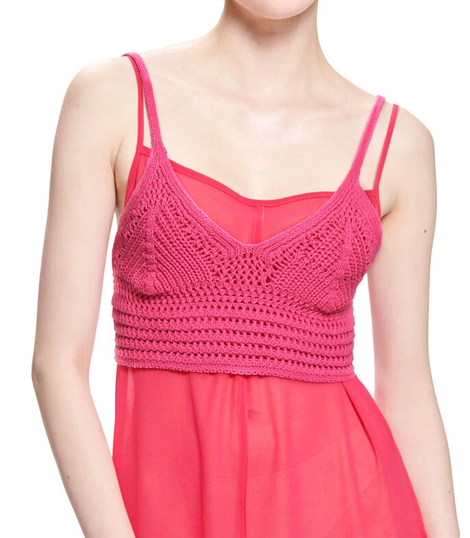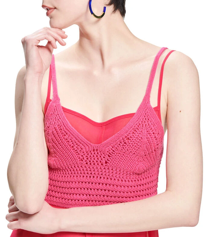 Bralette Unfollow en tejido de punto crochet, tirantes con escote V.