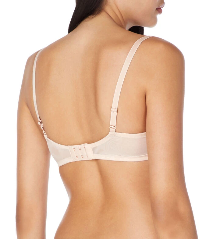Brasier Skarlett Blue en tejido de punto semi transparente con bordado de zanahorias, varilla en copa, tirantes ajustables y broche al reverso.